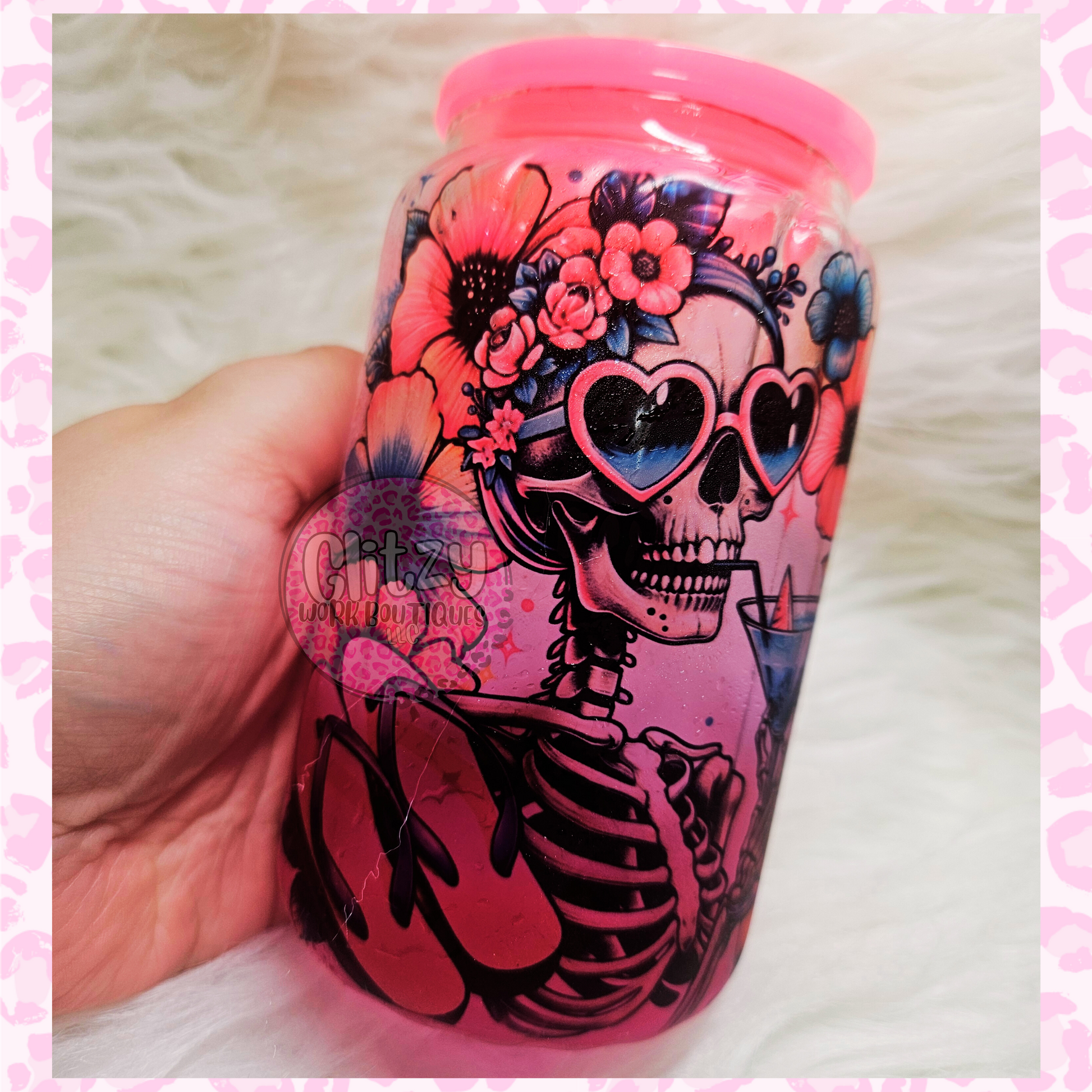 Quench your thirst in style with the BEACH PLEASE 16OZ LIBBEY GLASS! This vibrant glass features ombre detailing and a cute, colorful jelly lid. Handwash only to preserve its charming design. Keeps drinks icy cold for ultimate refreshment. Elevate your drinkware collection with this must-have glass!