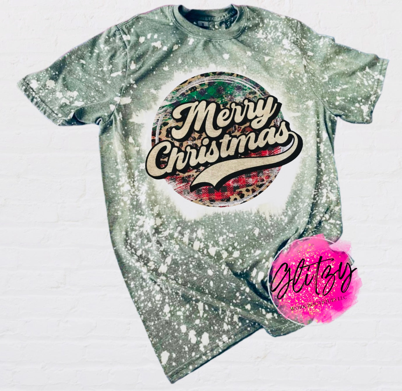 | Merry Christmas Retro Plaid Bleached Tee | GILDAN SOFT STYLE Tee